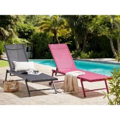 Belangrijkste eigenschappen: Rugleuning in 5 posities verstelbaar, Zeer comfortabel, Trendy design en kleur, Roestvrijstalen frame, Speciaal gemaakt voor gebruik buitenshuis, UV-bestendigheidsklasse 4 (ISO 105-B02), Opgevouwen op te bergen