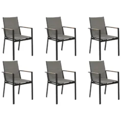 Set tuinstoelen. Deze set tuinstoelen is een perfecte zitoplossing als je tijd buiten wilt doorbrengen met vrienden en familie. Elke stoel is bekleed met een dikke laag stof voor zowel de rugleuning als de zitting, wat het gebruikscomfort garandeert. Bovendien zijn de stoelen gemaakt van hoogwaardig materiaal, waardoor ze een stevige constructie hebben en vrij buiten kunnen worden gebruikt. Geniet van warme dagen terwijl je ontspant op deze stoelen.