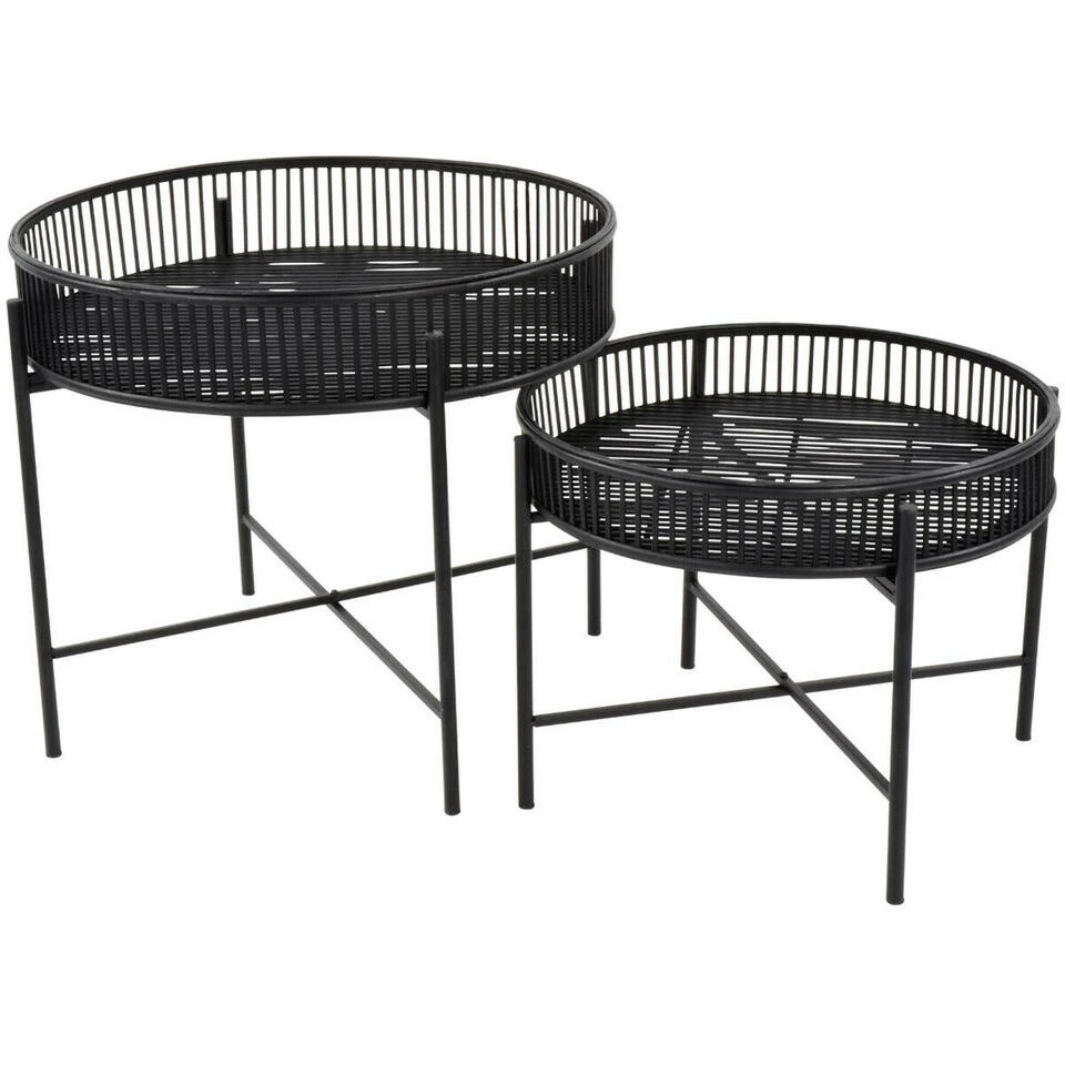 Bent u op zoek naar een eenvoudige manier om meer sfeer in uw interieur te creëren? Dan is bijzettafelset Aiko uit de collectie van het woonmerk Les een perfecte keuze! Deze trendy set bestaat uit twee tafeltjes met verschillende afmetingen, welke op een speelse manier bij elkaar geplaatst kunnen worden. Beide exemplaren zijn uitgerust met een subtiel metalen onderstel met een zwarte kleur als afwerking. Op elk onderstel rust een rond tafelblad met een opstaande rand, welke is uitgevoerd in zwart bamboe. Plaats bijzettafel Aiko in de woonkamer of hal, maar gebruik hem ook om de tuinkamer of ruimte onder de veranda een nieuwe look te geven. Tevens verkrijgbaar in het naturel. Afmetingen B49xD49xH39.50 cm. B60xD60xH49 cm.