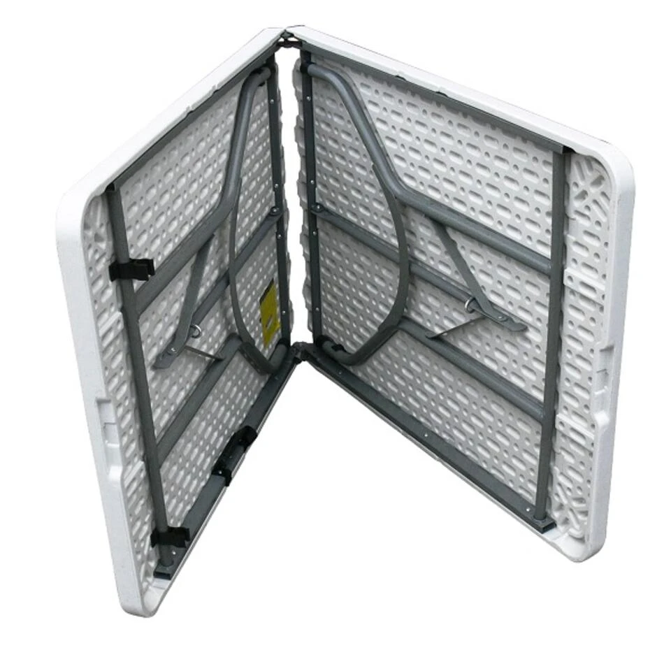 Inklapbare tafel – geschikt voor 8 personen. Op zoek naar een vouwtafel die je zowel binnen als buiten kunt gebruiken? Deze picknicktafel wit is ideaal voor buiten, op de camping of voor het creëren van extra ruimte op feestjes. De tafel is 180cm lang, 74cm breed en 72cm hoog. Opgeklapt is de tafel slechts 90x74x9cm en dus heel compact op te bergen. Daarnaast heeft de plooitafel een handvat zodat je hem gemakkelijk mee kunt nemen.