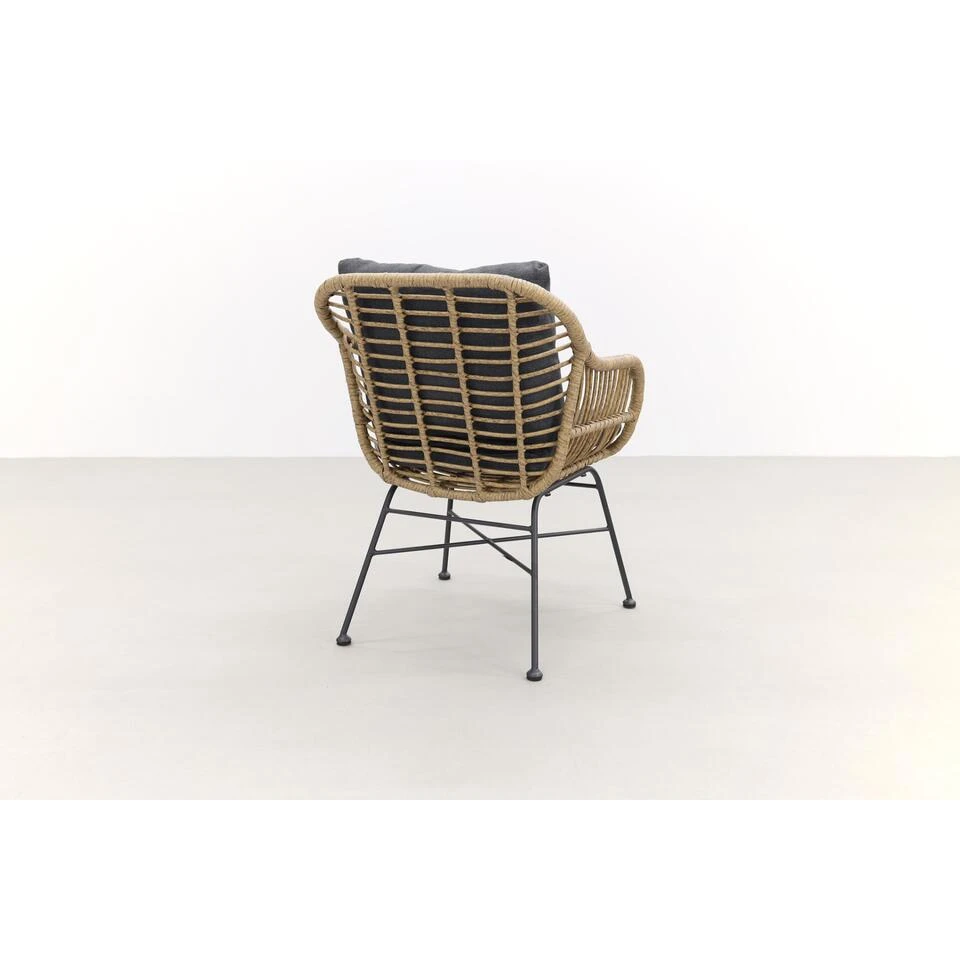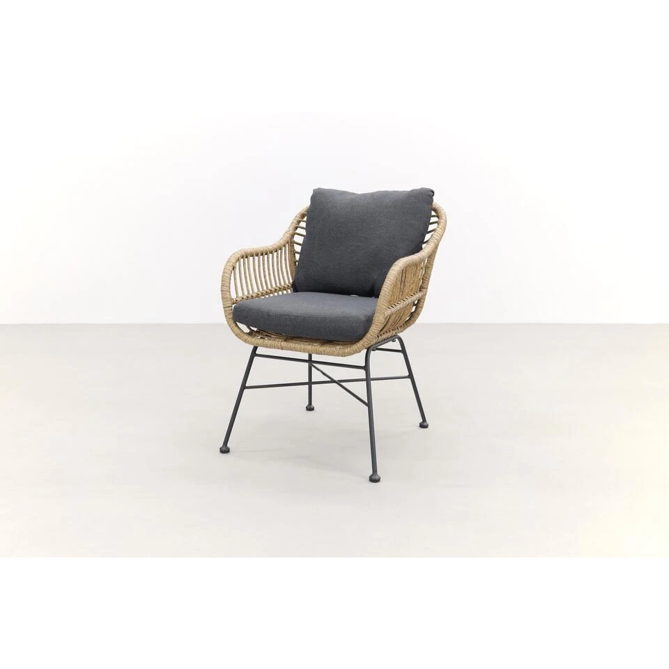 De Margriet tuinstoel heeft een zitkuip welke gemaakt is van aluminium. Om dit aluminium is het naturel kunststof vlechtwerkdraad gevlochten. De poten van de tuinstoel zijn gemaakt van staal. Extra stevig dus! Het aluminium is voorzien van een speciale coating die kras- en stootvast is. Voor optimaal zitcomfort is de Garden Impressions tuinstoel uitgerust met een zit- en rugkussen in een antraciet kleur. De kussens zijn voorzien van een rits zodat je de hoezen gemakkelijk met de hand kunt wassen.