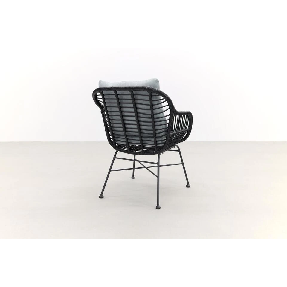 De Margriet tuinstoel heeft een zitkuip welke gemaakt is van aluminium. Om dit aluminium is het zwarte kunststof vlechtwerkdraad gevlochten. De poten van de tuinstoel zijn gemaakt van staal. Extra stevig dus! Het staal is voorzien van een speciale coating die kras- en stootvast is. Voor optimaal zitcomfort is de Garden Impressions tuinstoel uitgerust met een zit- en rugkussen in een lichtgrijze kleur. De kussens zijn voorzien van een rits zodat je de hoezen gemakkelijk met de hand kunt wassen.
