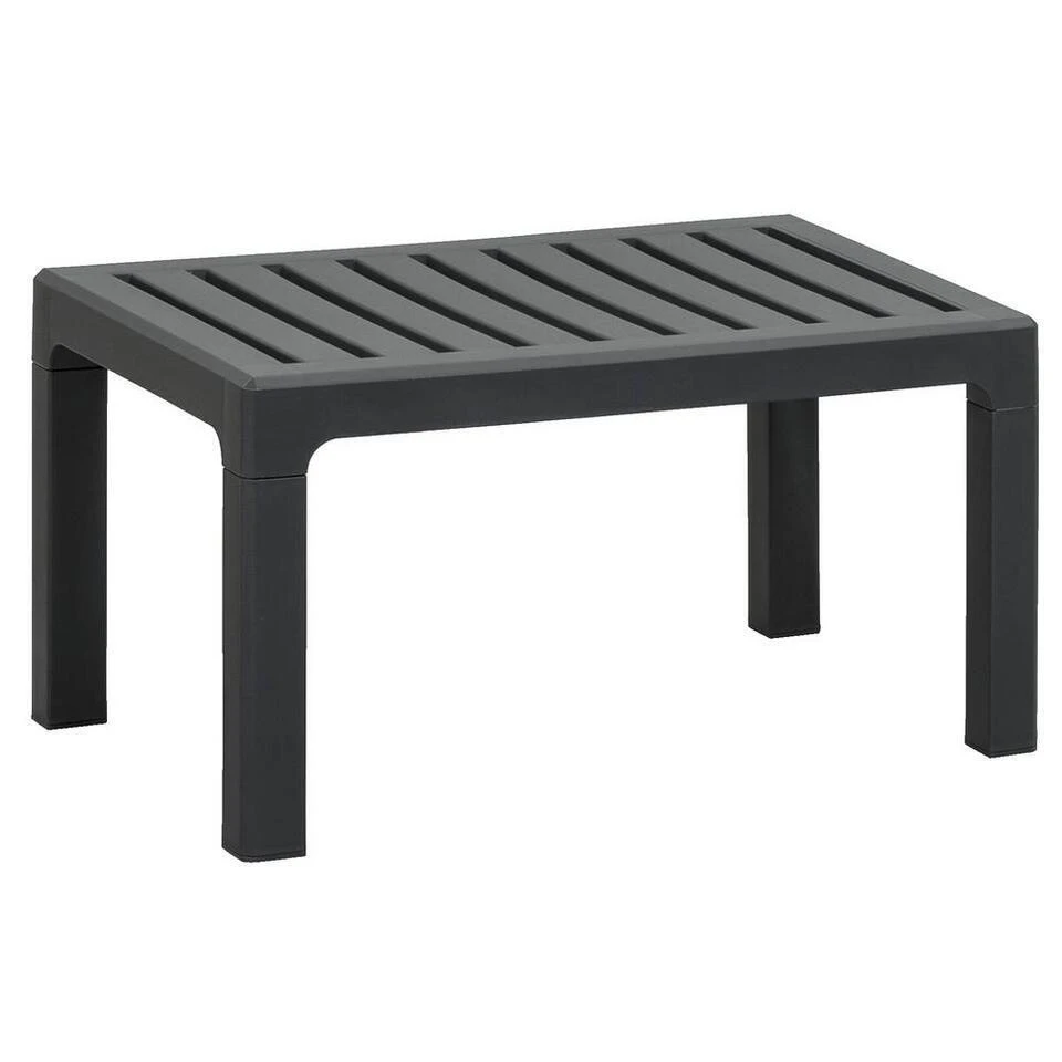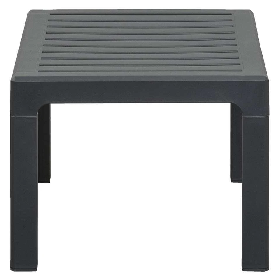 Tafel Nevada is gemaakt van kunststof en is stijlvol antracietgrijs van kleur. De tafel is laag, maar wel royaal en heeft een trendy uitstraling dankzij de grijze kleur en het materiaalgebruik. Het hoogwaardige kunststof is van topkwaliteit en zorgt er voor dat de tafel weerbestendig en onderhoudsarm is. Dit geeft de loungetafel een langere levensduur. Maak de set compleet met de loungestoelen en loungekussens.
