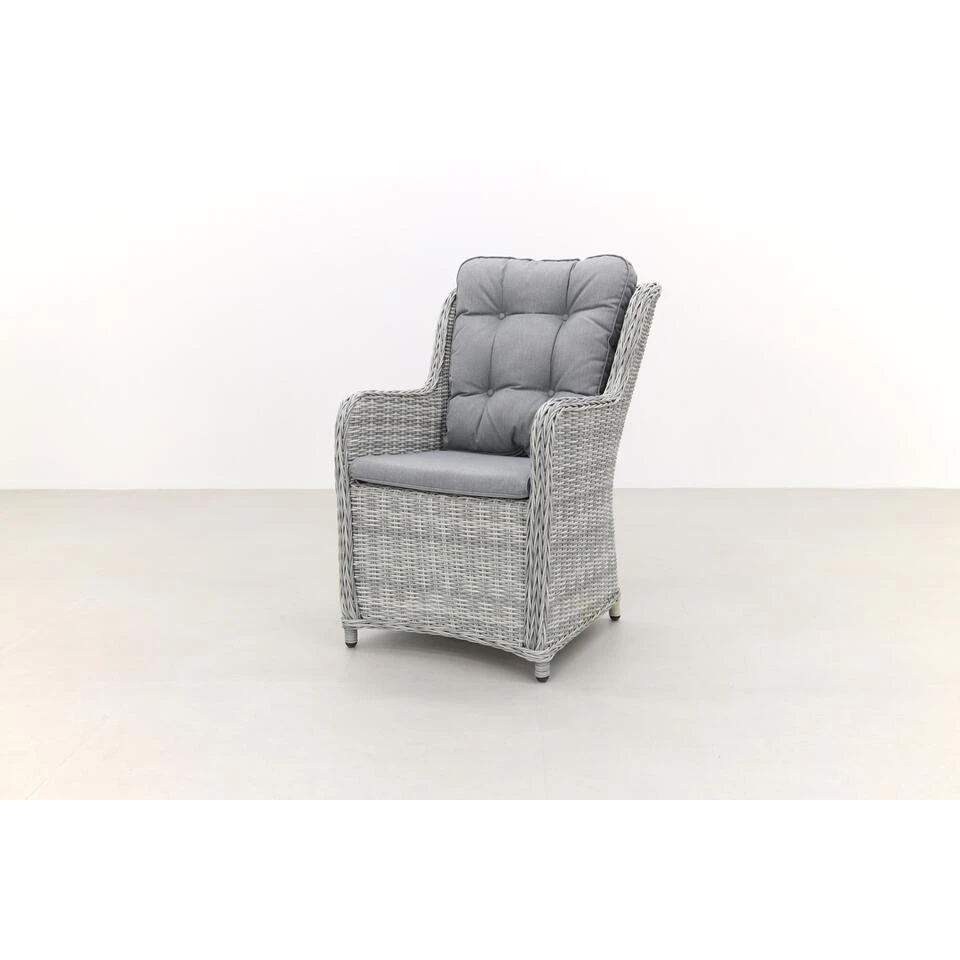 Comfortabele tuinstoel met een luxueuze uitstraling. De Richmond van het merk Suns is een super stevige tuinstoel welke perfect gecombineerd kan worden bij diverse tuintafels. De tuinstoel heeft een iets achterover hellende rugleuning wat ervoor zorgt dat je extra comfortabel zit. De Richmond heeft rond wicker in de kleur Pearl Grey.Â