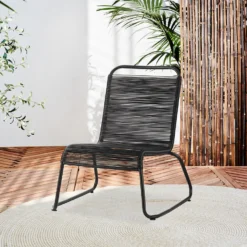 Relax Tuinstoel Met Voetenbank Lia Touw Zwart – 78x70x84 Cm – Touw – Zwart