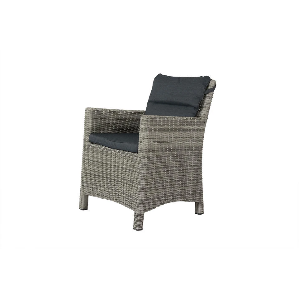 De Olivia tuinstoel heeft een actieve zit en is daarom perfect geschikt als dining tuinstoel. De wicker tuinstoel is te combineren bij veel verschillende soorten tafels. De armleuninghoogte van de wicker tuinstoel is 67 cm. zodat de stoel onder bijna iedere tuintafel past.Â