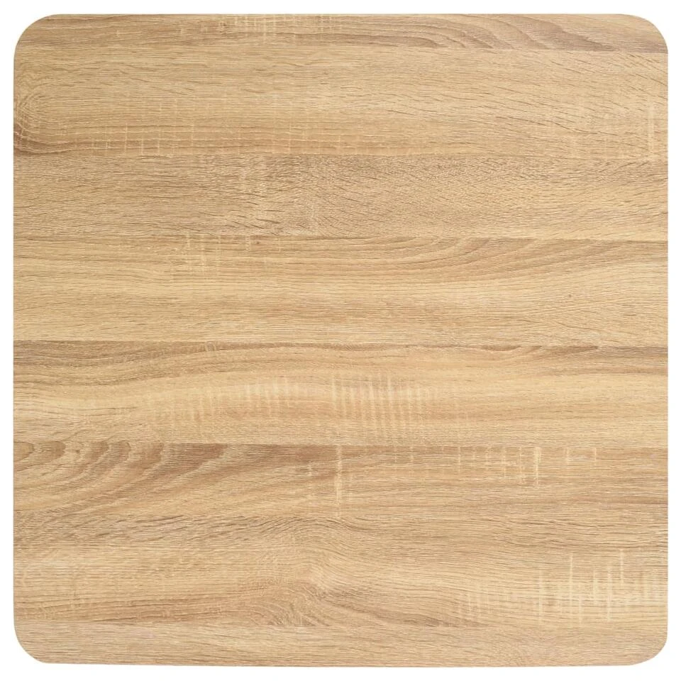 Het tafelblad is gemaakt van MDF met houtnerfpatroon en wordt ondersteund door een stalen poot en basis. Hij is gemakkelijk schoon te maken met een vochtige doek. Gebruik de tafel als aanvulling op je interieur, restaurant, koffiebar of lunchroom.