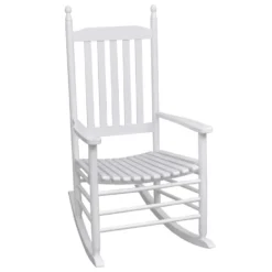 Ontspan in onze vintage-geïnspireerde massief houten schommelstoel. Hij heeft een elegant en tijdloos ontwerp en is een praktische en klassieke toevoeging aan elk interieur.