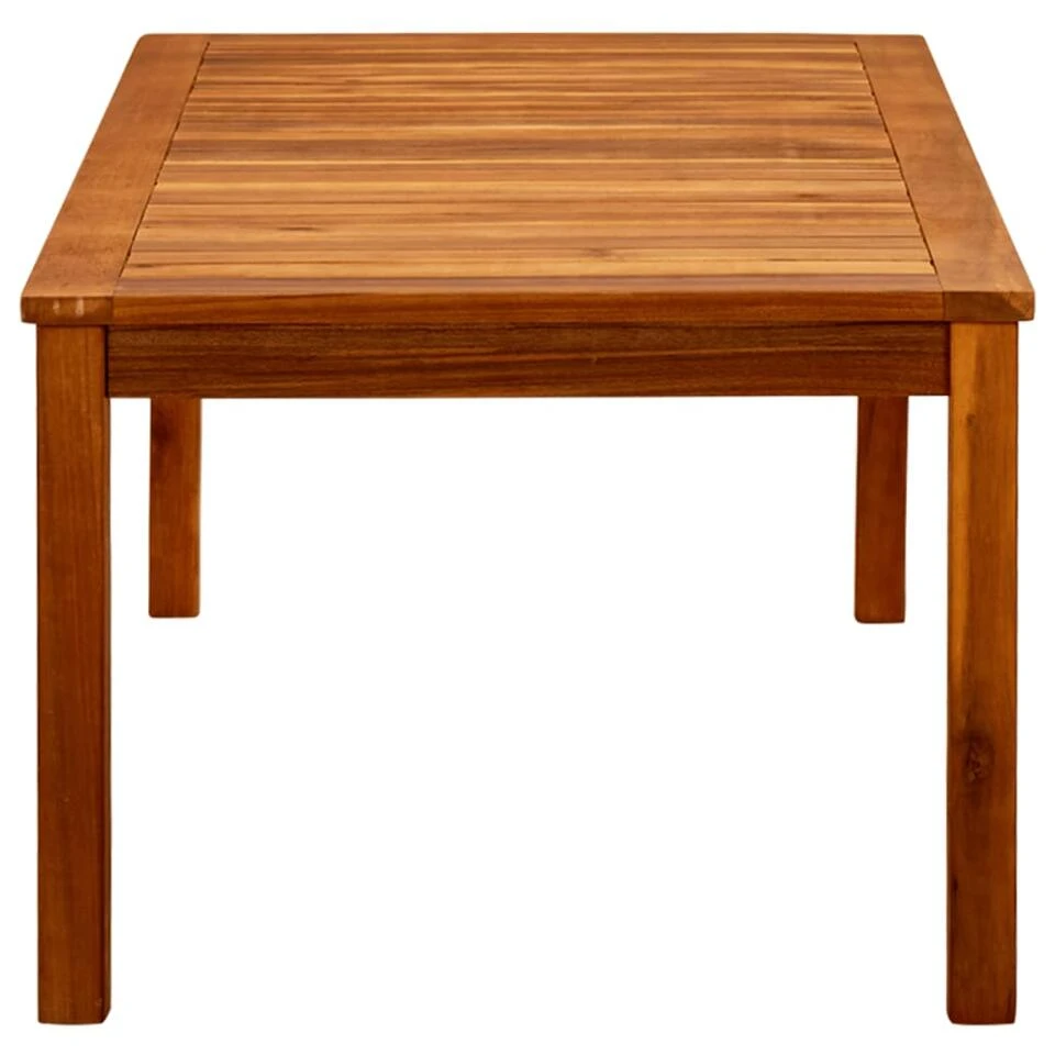 Deze tafel is gemaakt van massief acaciahout met een natuurlijke olieafwerking, die weerbestendig en duurzaam is. Elke stap van het proces wordt met de grootste zorg uitgevoerd, of het nu polijsten of lakken is. Het stevige tafelblad met gelat ontwerp biedt ruimte om snacks, fruitmanden, decoratieve voorwerpen en andere benodigdheden te plaatsen.