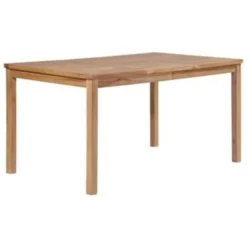 Deze massief houten eettafel heeft een afwerking op waterbasis en voegt een vleugje natuurlijke charme toe aan je keuken, tuin of patio.