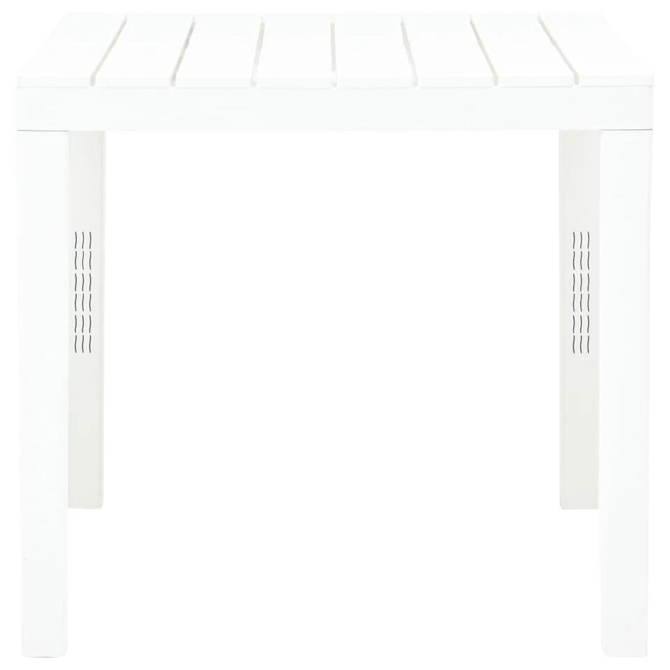De tafel is gemaakt van duurzaam kunststof waardoor hij weerbestendig en gemakkelijk schoon te maken is. Het tafelblad met gelat ontwerp voegt extra elegantie toe. Daarnaast is hij lichtgewicht zodat je hem eenvoudig kunt verplaatsen.